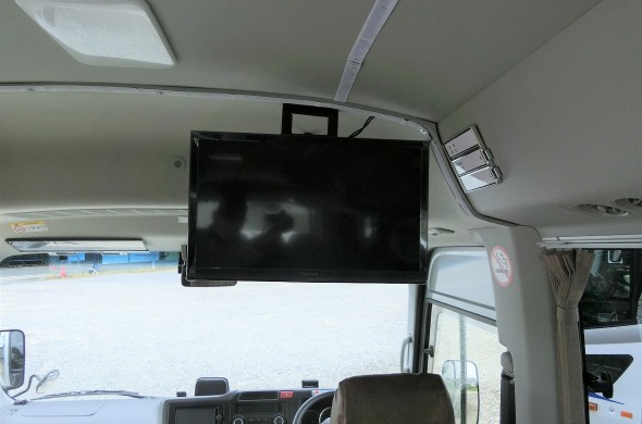 観光バス仕様のマイクロバスです。座席は座り心地もよく、テレビも装備しています!