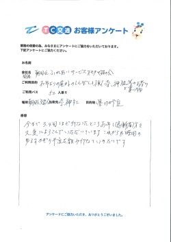 ご利用目的 | お年寄りの屋外の親睦会(お寺や神社などのお参りやお買い物) |